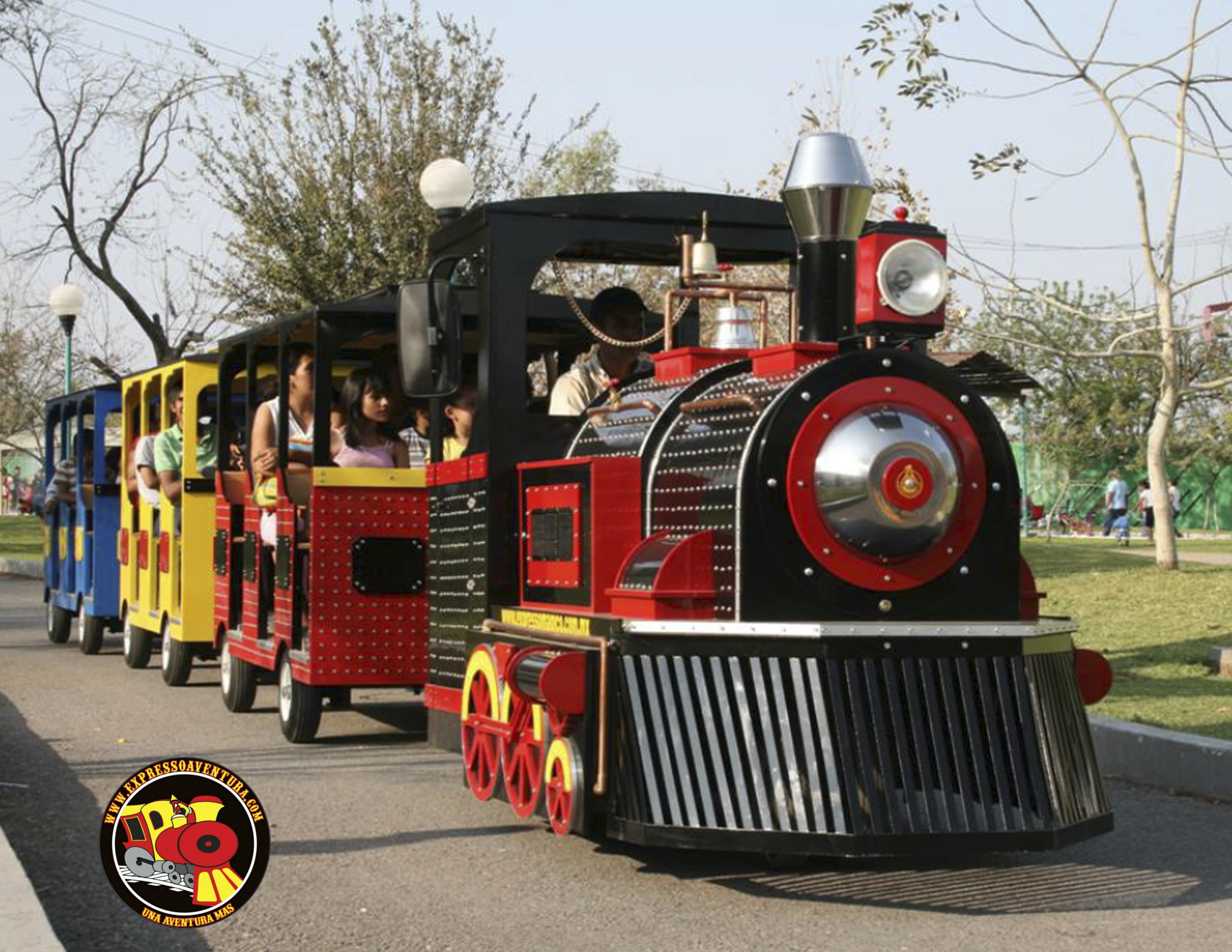 Es un Tren eléctrico el cual consta de 3 vagones, ideal para lugares abiertos como parque acuático, parque temático o zoológicos sus vagones están diseñados por 3 filas, este Tren tiene como capacidad hasta 40 personas entre niños y adultos.